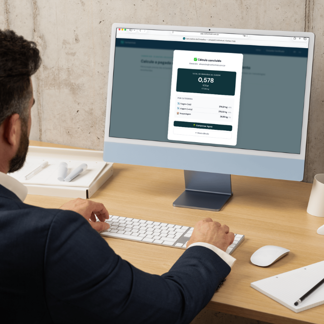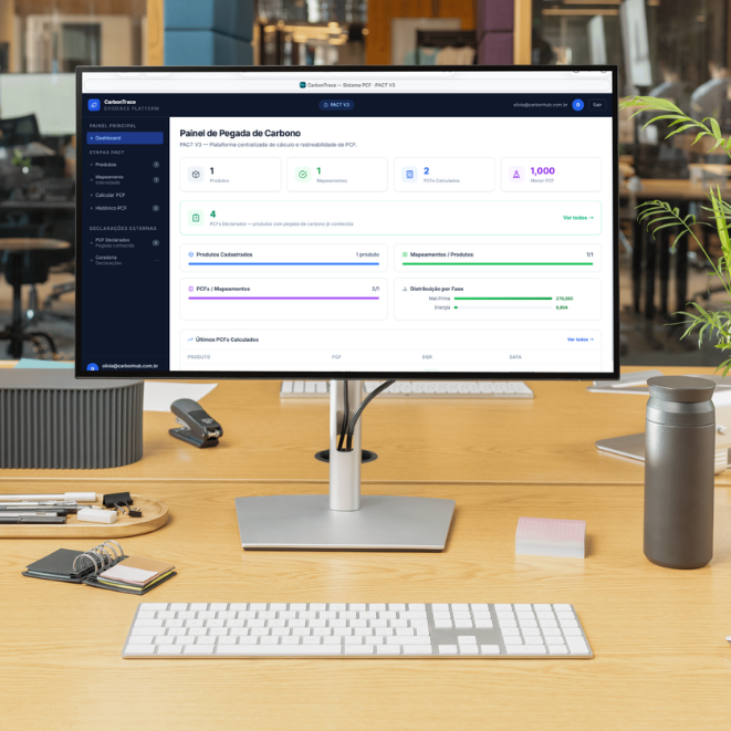 Estruturamos um ecossistema digital com 7 plataformas SaaS integradas para atender empresas brasileiras e multinacionais em todas as etapas da jornada Net Zero: do inventário GEE (Escopos 1, 2 e 3) à conformidade com CSRD/ESRS, do MRV digital de projetos florestais ao registro público de pegada de carbono de produtos.